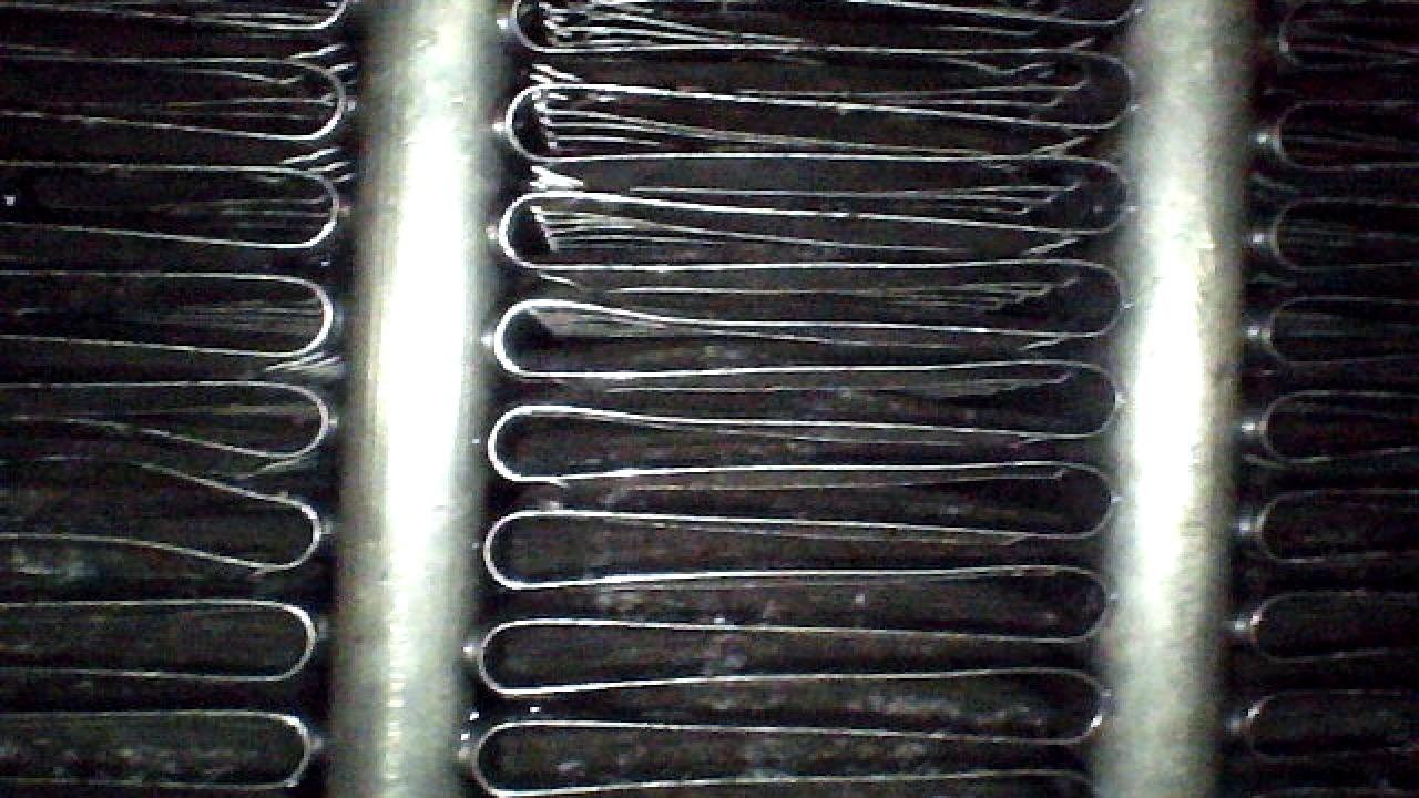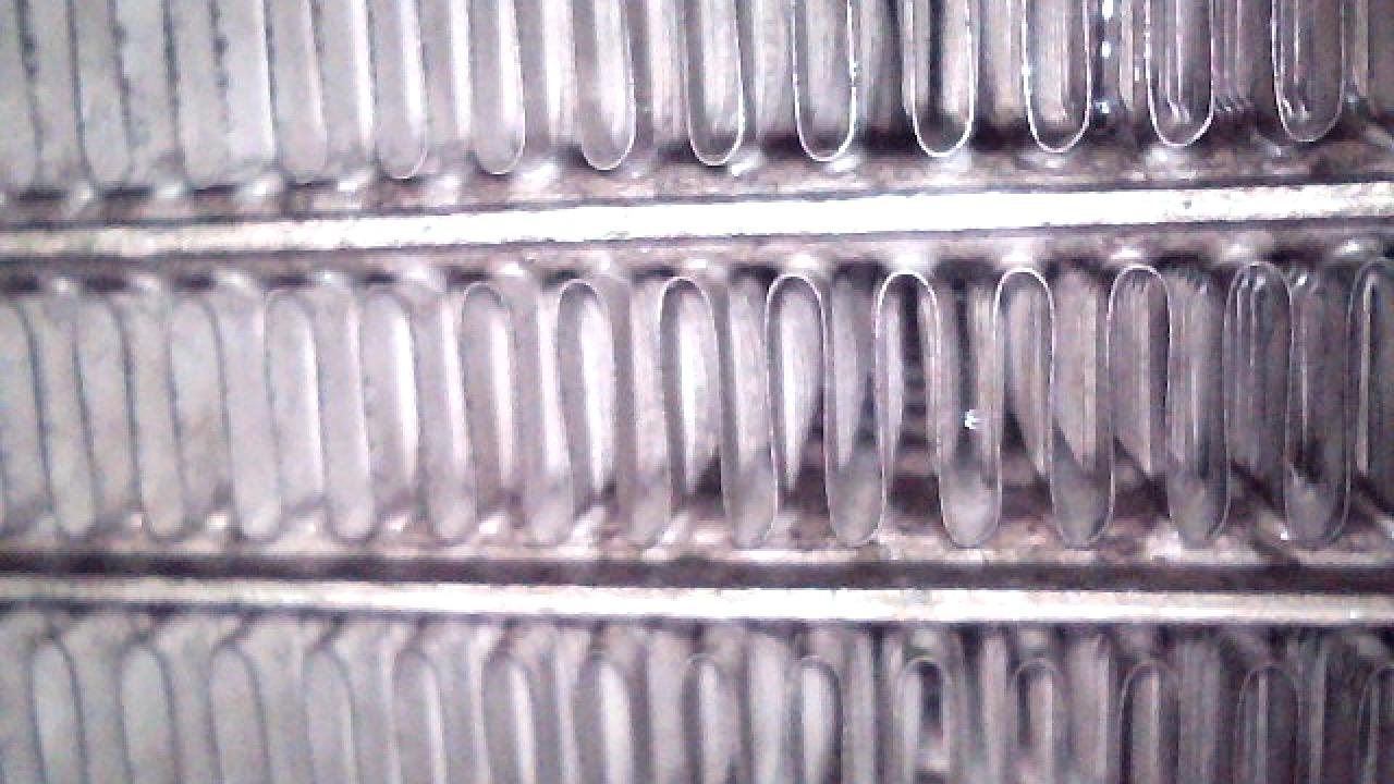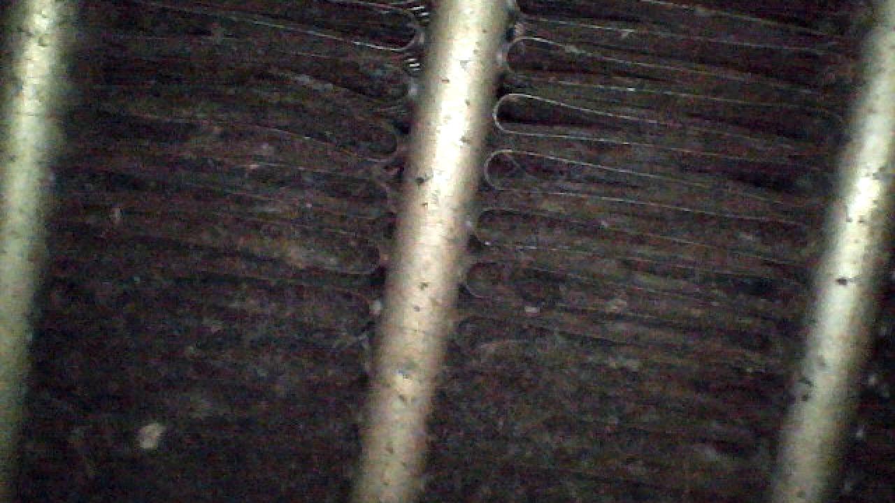 点検を兼ねてエアコン内部(エバポレーター)を確認すると、フィンの奥にはホコリや虫の死骸が残留しており、洗浄を行うと茶色がかった排水が出てきました。